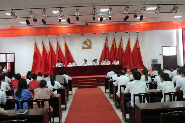 6月27日下午,中共好想你棗業股份有限公司第一次黨員大會在公司博物館三樓召開。新鄭市委常委、組織部部長劉德金同志,中共孟莊鎮黨委書記馬書強同志,孟莊鎮鎮長唐永剛同志、公司董事長兼總經理石聚彬、公司銷售中心總經理張艷菊、公司采購中心總經理常國杰出席本次大會。
