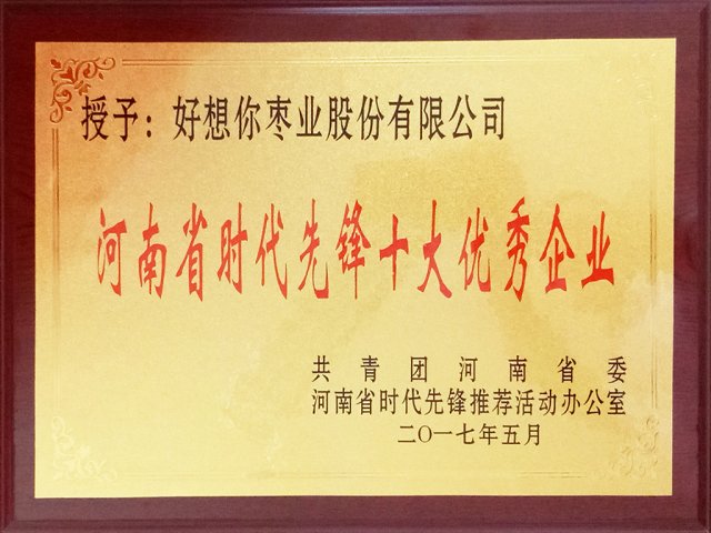 好想你榮膺“河南省時代先鋒十大優秀企業”桂冠