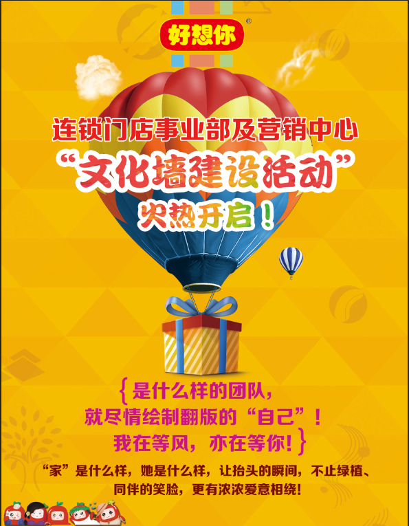 文化隱無形,言無聲,卻生生不息,永續傳承!此次文化墻建設活動的展開凝聚了團隊的力量,定格了同事們的歡聲笑語,更促進了各部門文化的彰顯,為好想你大家庭增添了靚麗的色彩!