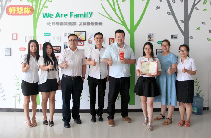 各部門文化墻制作完成之后,門店服務部還在“好想你天使之家”微信公眾平臺上發起了“文化墻PK”投票活動。為了爭奪團隊榮譽,各參賽部門同事工作之余在公司微信群展開“花式拉票”,各種別具創意的拉票宣言層出不窮,甚至還有美女旗袍秀送上。最終,共有將近6000人參與投票,經過近一周的激烈角逐,營銷管理中心、運營管理中心、產品管理中心分別獲得一、二、三等獎。營銷系統負責人兼連鎖門店事業部總經理司胤衡走進各個裝飾一新的辦公室,分別為獲獎部門頒發了證書及200元到500元不等的文化活動獎金。