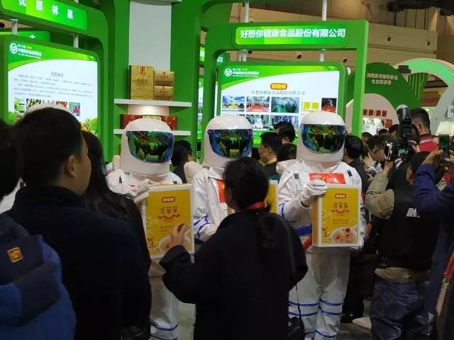 神秘“宇航員”驚現綠博會現場,別具“黑科技”特色的綠色食品吸引了大量的參展客商一探究竟。“是好想你航天黑科技‘清菲菲’”,有一個人高呼。經過了解知道好想你清菲菲是由若羌灰棗、古田銀耳、蘭州百合、湘潭湘蓮、寧夏枸杞五種原材經過凍干技術精心處理后形成的即食養生食品。慢燉兩小時,沖泡只需一分鐘,可以說是“美顏靚湯”。