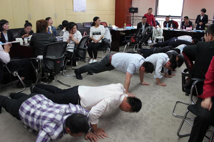 對(duì)賭機(jī)制的引入,使本次培訓(xùn)現(xiàn)場(chǎng)氣氛達(dá)到“沸點(diǎn)”:參會(huì)人員被自然分組,每組制定清晰的團(tuán)隊(duì)目標(biāo),并分別為此“下注”。整個(gè)培訓(xùn)過(guò)程以團(tuán)隊(duì)PK的方式開(kāi)展,獲勝團(tuán)隊(duì)獲得全部賭金,輸?shù)膱F(tuán)隊(duì)則接受俯臥撐、跑步、爬樓梯等不同形式的懲罰。對(duì)賭的展開(kāi)點(diǎn)燃了每一位參會(huì)人員的熱情,激發(fā)大家時(shí)刻為團(tuán)隊(duì)榮譽(yù)而戰(zhàn)。