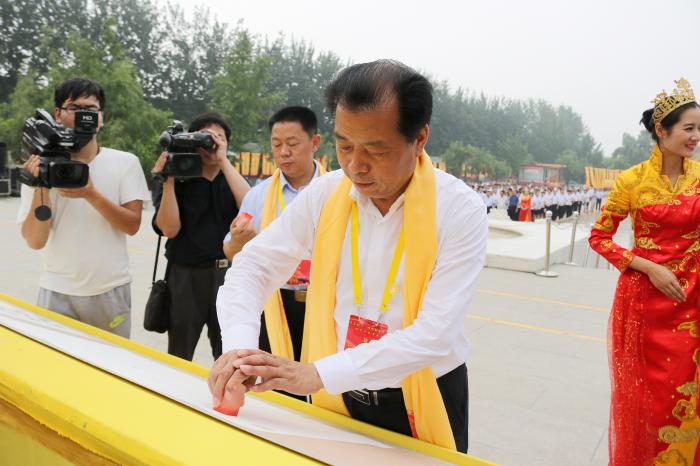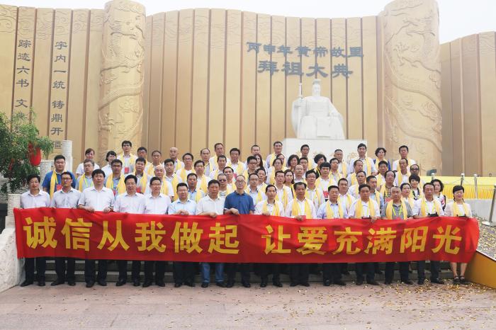 上午9點整,拜祖儀式正式開始,董事長石聚彬及現場59名企業家懷著無比崇敬之情向始祖軒轅黃帝敬香。作為新鄭誠信企業家代表,董事長還走上祈福臺,領誓《誠信宣言》,現場企業家共同宣讀,并在《誠信宣言》的書法長卷上蓋上印章,向人文始祖莊重承諾“以至誠之心,待人處世;以至誠之德,律言律行,不忘初心,增輝故里,樹立企業誠信形象”。