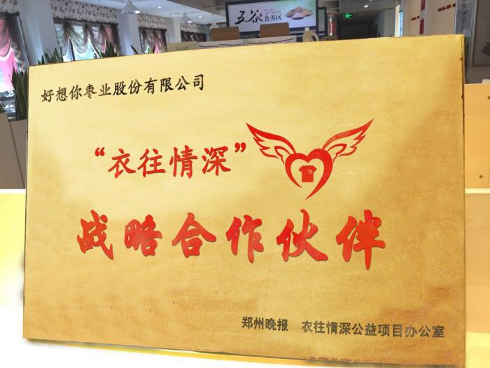 好想你棗業一直熱心公益事業,創立育才、愛心基金,關愛老人和留守兒童,籌劃好想你希望小學,堅持每年資助“關愛女孩”項目和貧困大學生,為高校捐贈校車、資金等,主動為災區捐錢、捐物,積極投身地方修路、鋪橋等基礎設施建設,每年開展送“臘八愛心粥”活動……好想你用實際行動履行著民營企業的責任和擔當。本次活動為好想你棗業與“衣往情深”公益項目的首次合作。“衣往情深”項目負責人張影表示:“目前,鄭州市區已經鋪設大熊貓捐物箱近400個,但仍不能完全滿足市民的需求,一些市民仍有衣無處捐。好想你棗業在鄭州的百余家連鎖專賣店覆蓋面廣,深入社區,是一個很好的資源優勢,好想你棗業加入,將大大促進我們的公益項目的發展,聚集更多市民的愛心。”