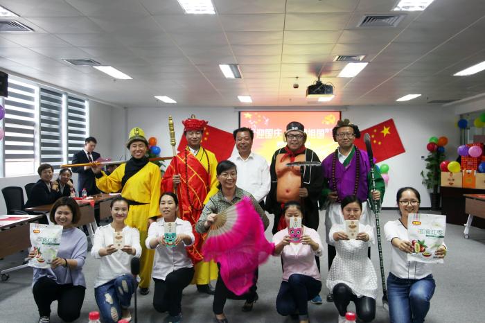 隨后,各部門同事帶來了形式多樣、精彩紛呈的表演。有氣勢高昂的大合唱,有深情感人的詩朗誦,有活力四射的舞蹈,還有創意十足的小品、三句半等。其中,人力資源中心原創的情景劇《西游劇組好想你》將活動現場推向了高潮,只見他們身穿唐僧師徒的服裝、惟妙惟肖的表演為現場帶來了歡聲笑語,引發掌聲陣陣。值得一提的是,在此次活動中,各體系各中心的領導也參與到表演中來,和同事們一同為大家帶來快樂和感動。活動最后,董事長即興表演了詩朗誦并演唱紅色歌曲,同事們紛紛揮動手中的五星紅旗,一起合唱,現場沉浸在一片紅色的海洋中。