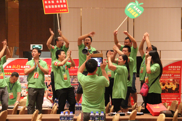 在培訓過程中,限額500名的學員還被分為小分隊,借助游戲、互動、行動等互相分享、互相競爭,現場體驗學習,真切感受目標執行、責任擔當、獎懲分明的魅力,在學習的同時不斷消化、深化認識,促進理論知識的內化。公司參訓人員不僅課前提早到場積極參會,課堂上聚精會神聽講,課后認真進行小組探討,保質保量完成作業,而且組成了“好想你”、“木本糧”兩個團隊,在活躍現場氣氛、展示團隊風采、分享學習體會等環節表現突出,團隊形象好,爭先意識強,在異常高漲的現場氣氛中,切身感受到“投入到令自己感動”的執行力的強大和團隊凝聚力的迸發,也很好地宣傳了好想你的企業文化。