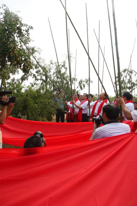 “棗兒紅了,來吧,看看;棗兒甜了,來吧,嘗嘗!”9月5日,2015中華棗鄉風情游暨第13屆好想你紅棗文化節在好想你紅棗科技示范園隆重開幕。同時,中央電視臺七套“美麗中國鄉村行”欄目組走進棗鄉,就棗鄉風情和文化進行錄播,開幕式現場的“天下第一棗”紅棗造型引熱議。