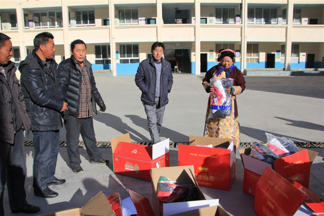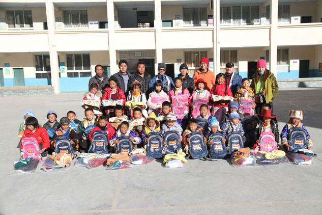 我們到達學校時,30多名學生和老師已經在瑟瑟的寒風中迎接我們,一下車,孩子們就用當地最高的禮儀熱情地為我們獻上哈達。