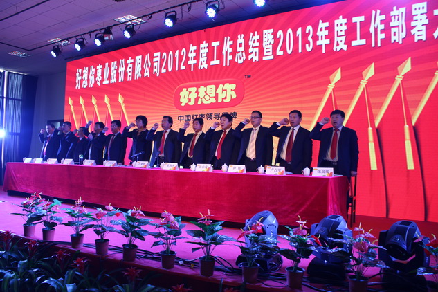 石聚彬強調,2013年公司重點工作是“一個中心、一條主線”:即以打造中國紅棗領導品牌為中心,不斷增強好想你的品牌影響力;以建立紅棗全產業鏈為主線,構筑紅棗全產業鏈精細化管理體系。每個中心、每個經理、每個員工都要圍繞這一中心、這條主線深入開展工作,為實現自己的人生價值,為好想你引領產業發展,為公司“讓沙漠綠起來,讓棗農富起來,讓國民健康起來”的企業使命貢獻力量。