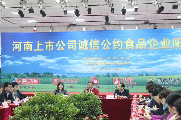 2013年10月31日,由河南證監局指導、河南上市公司協會主辦的“河南上市公司誠信公約陽光行”第十三站走進好想你棗業股份有限公司,在此召開河南省食品類上市公司誠信陽光行活動,了解企業誠信經營情況。好想你棗業股份有限公司、河南雙匯投資發展股份有限公司、河南省蓮花味精集團有限公司、鄭州三全食品股份有限公司、河南華英農業發展股份有限公司、雛鷹農牧集團股份有限公司共計六家食品類上市公司共同參與活動。