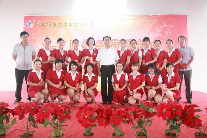 省外專賣店前十名、省內(nèi)專賣店前十名、省區(qū)總經(jīng)理前六名接受了頒獎,并與石聚彬董事長合影留念。銷售中心代表楊楠、孫曉娟、郭玉峰、石宏偉,生產(chǎn)中心代表孟喜峰、石建國與大家分享了各自的成功經(jīng)驗。其中,孫曉娟的團隊還為大家做了精彩的勵志表演,激情的展示、昂揚的斗志、向上的精神博得了陣陣掌聲。