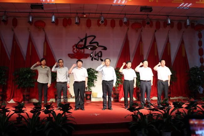 石聚彬董事長首先攜銷售副總張雖線、生產副總張艷菊、采購副總常國杰、財務總監張宗成、生產中心總監盧占軍、市場中心總監鐘輝組成的高管團隊亮相。