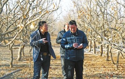 新疆南北的天冷熱不均,記者從-1℃的中原大地飛抵-14℃的烏魯木齊時,凍得直捂耳朵,四處買棉帽,可再飛一個多小時到了阿克蘇,卻是和河南一樣的溫度?!鞍滋煲簿褪?1℃,可晝夜溫差大,晚上最低氣溫是-16℃,你看這棗園里,還是白茫茫一片,都是前幾天下的雪,一直化不了”,劉書顯一邊在棗園里拿著話筒做大河客戶端直播,一邊與正在棗園里剪枝的李成學說著話。
