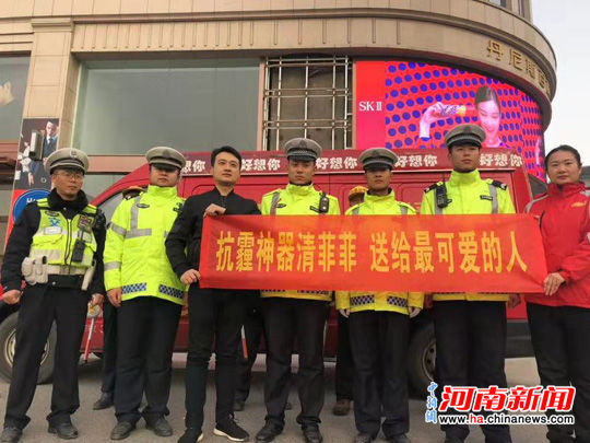 近日,鄭州氣溫驟降,空氣質量越來越差,連日出現霧霾、寒潮天氣。12月4日,一件暖人的事兒在鄭州這座城市上演。為了表達對一線交警的關愛,好想你開展“抗霾神器清菲菲送給最可愛的人”活動,將2000多份黑科技產品清菲菲送到一線交警手中。
